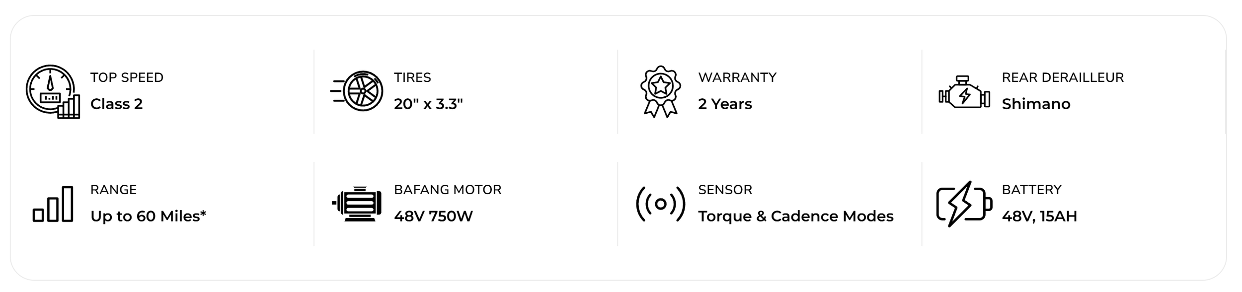 Removable Internal Lithium-Ion, 48V 15Ah (720Wh)Range